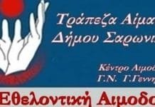 Εθελοντική Αιμοδοσία στον Δήμο Σαρωνικού.Παρασκευή 21 Απριλίου 2017