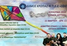 O Δήμος Κρωπίας και το Ν.Π.Δ.Δ. «Σφηττός» διοργανώνουν την εκδήλωση «Κούλουμα 2019» την Καθαρά Δευτέρα 11 Μαρτίου 2019, στις 11:30 π.μ., στο Δημοτικό Στάδιο...