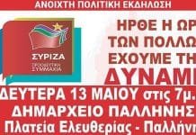 Πολιτική εκδήλωση του ΣΥΡΙΖΑ στην Παλλήνη, τη Δευτέρα, 13 Μαΐου, με ομιλητές πέντε υποψ....