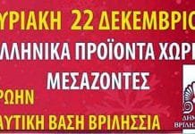Ελληνικά προϊόντα απευθείας από τους παραγωγούς στο Δήμο Βριλησσίων. Κυριακή, 22 Δεκεμβρίου 2019