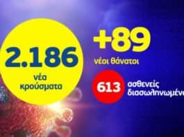 Κορωνοϊός: 2.186 νέα κρούσματα, 375 στην Αττική, 89 θάνατοι, 613 διασωληνωμένοι