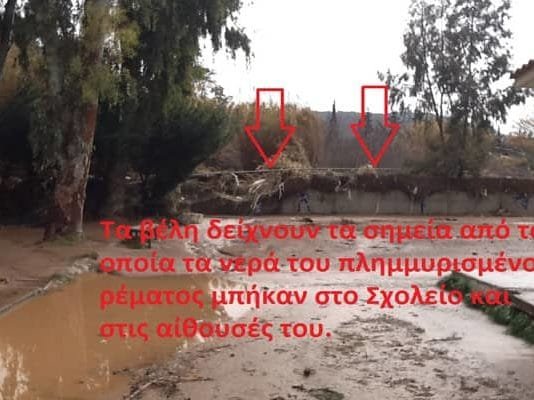 Υπερχείλιση μικρής κλίμακας του ρέματος Ραφήνας στο σημείο που τέμνεται με το 7ο Δημοτικό Παλλήνης