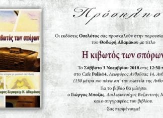 Οι εκδόσεις Οσελότος παρουσιάζουν στην Ανθούσα το βιβλίο του Θοδωρή Αδαμάκου...